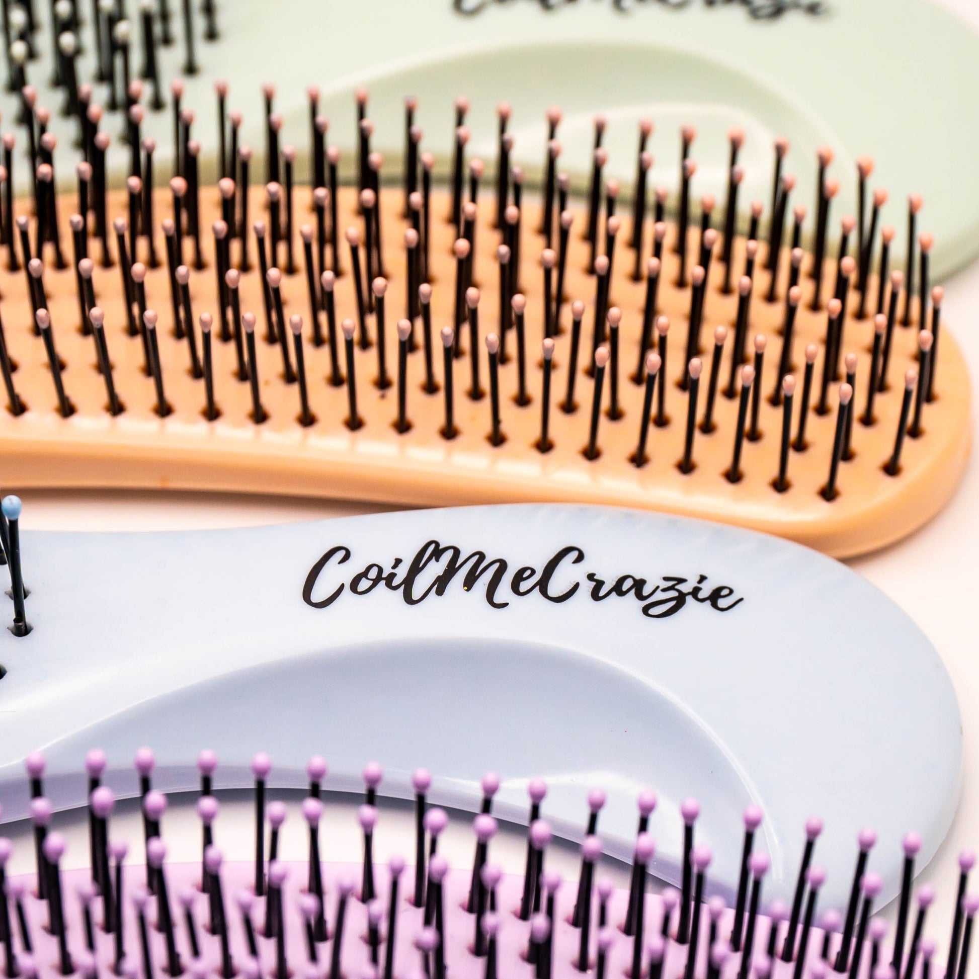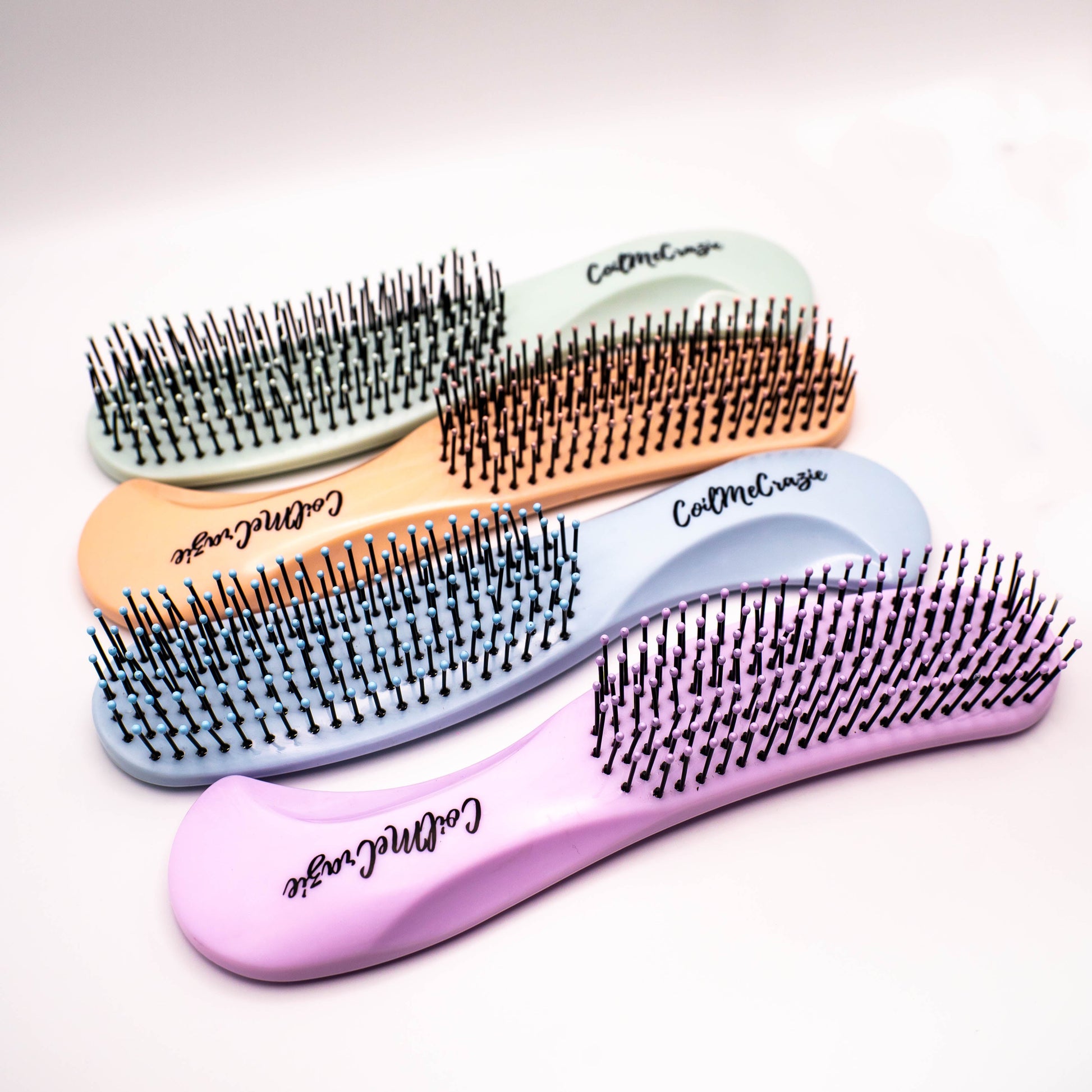 After using our Wide Tooth Comb, Our Signature Detangling Brush is used to remove any smaller tangles within the hair and define the coils with ease. With its unique hand held grip, detangling has never been so easy.